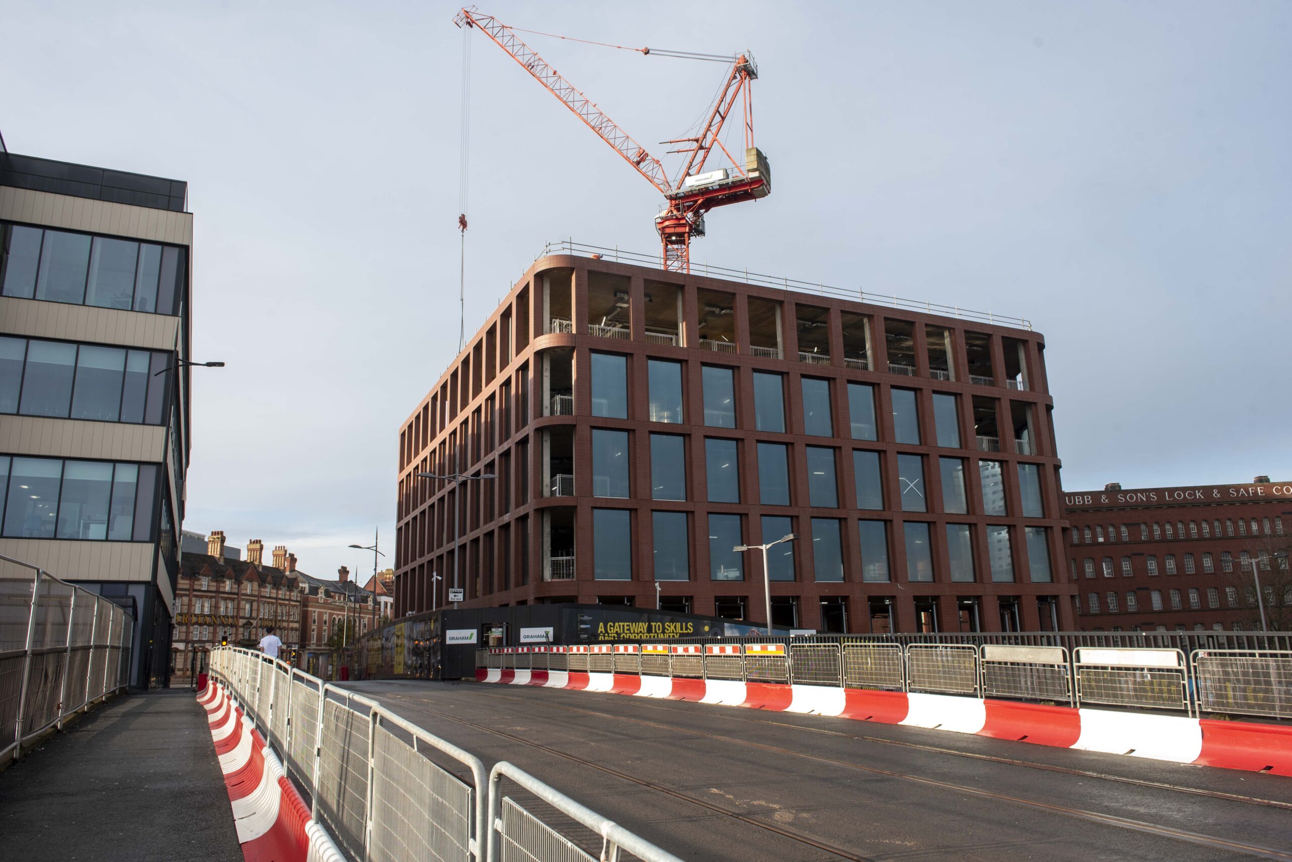 The brick-faced, pre-cast external façade on the six-storey building has now been completed by contractors GRAHAM.